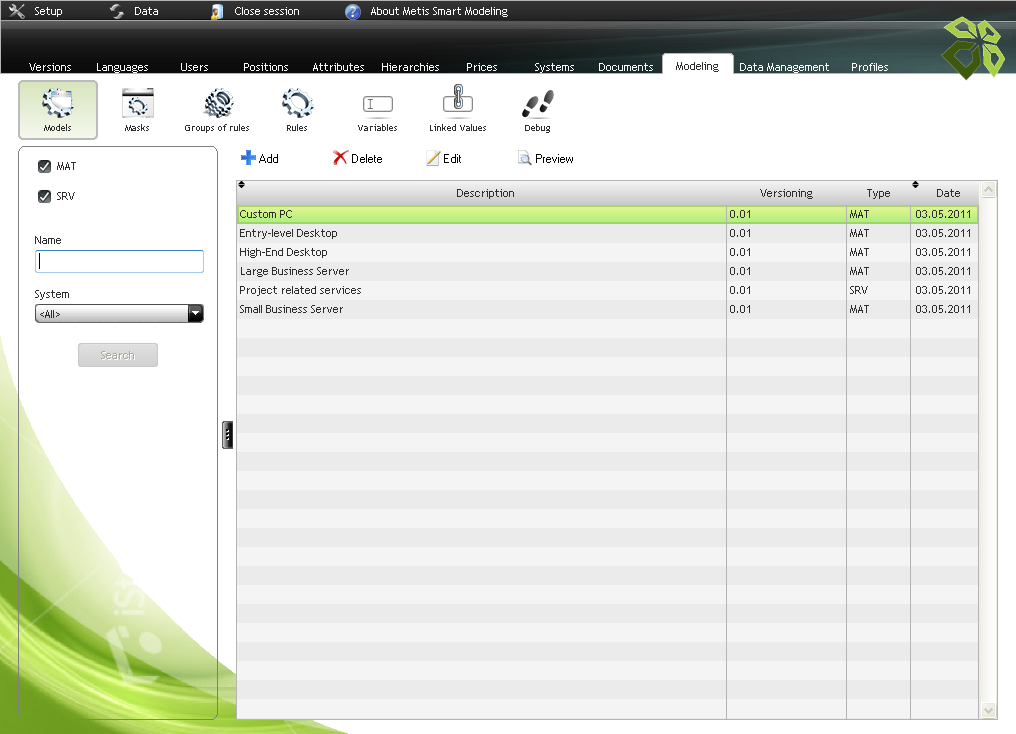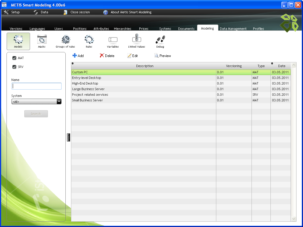 Bread crumbs: Metis Smart Modeling - Linked Values > Metis Smart Modeling - Variables > File:MetisSmartModelingSCModels.PNG